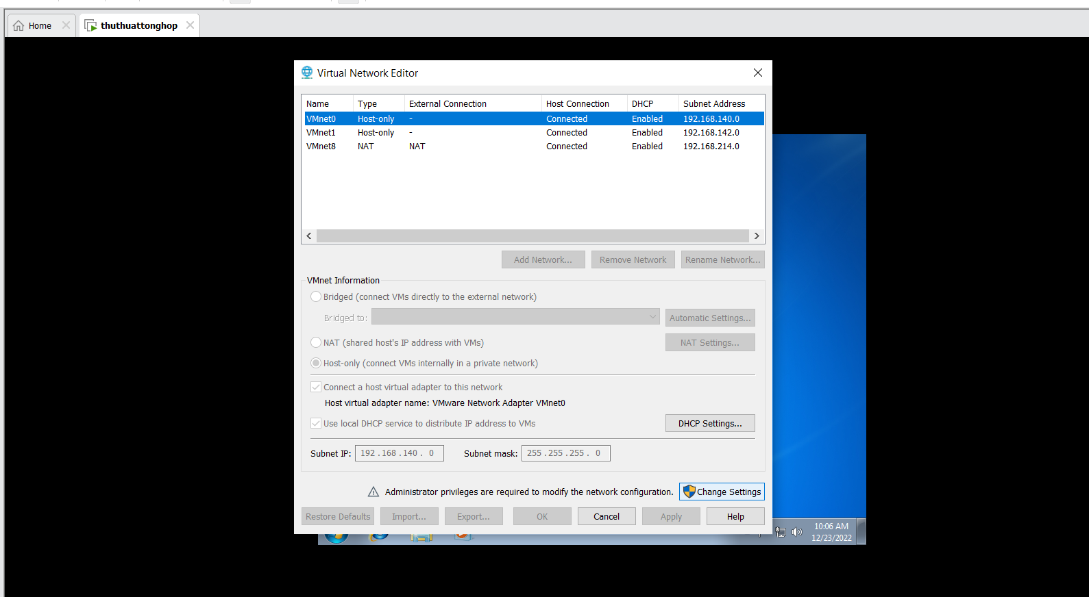 VMnet0 các bạn tích vào Host-only + connect a host virtual adapter to this net work + Use local DHCP sevice to distribute IP address to VMs